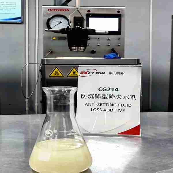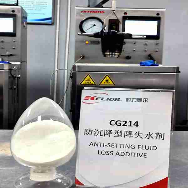 The fluid loss additive CG214 is a synthetic polymer that effectively reduces water loss from the slurry to the porous formation during the cementing process.